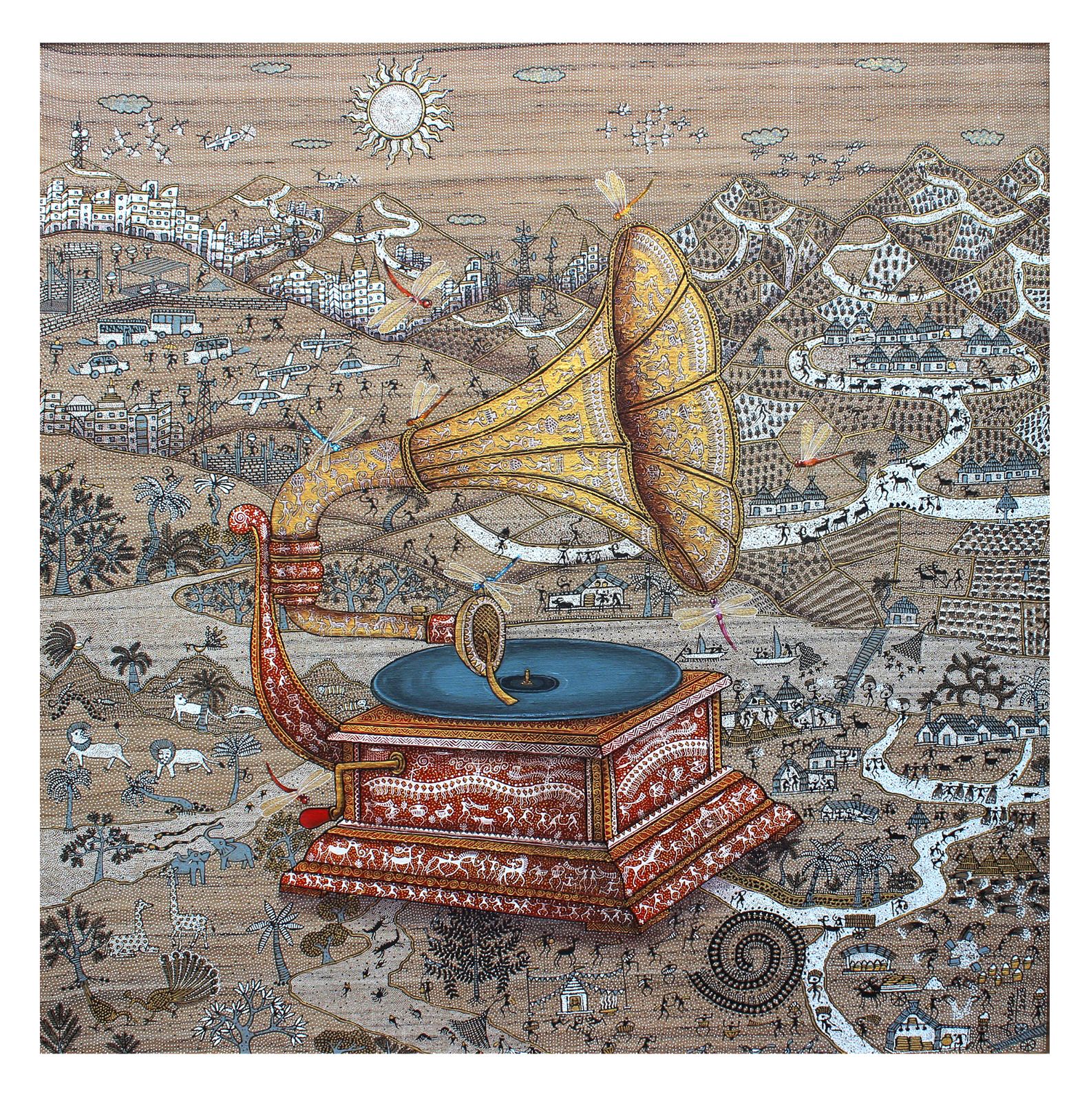 Abhipsa Pradhan (b. 1979) is a National Awardee (Lalit Kala Akademi, 2023) and a multidisciplinary artist working in painting, sculpture, and installations. A BFA and MFA graduate, she has participated in over 50 exhibitions, camps, and workshops. Her work explores indigenous and contemporary themes through the experimental use of materials and techniques. Major recognitions include the Art Society of India Award (2024), AIFACS Award (2022), Prafulla Dahanukar Award (2022), Tribal Award, and the Junior Fellowship from CCRT, Govt. of India. My Work- "Journey" is a layered exploration of time, tradition, and transformation. Blending Idital art with vintage objects, cars, gramophones, mythological figures, rituals, and cityscapes, my work reflects the coexistence of the ancient and the postmodern. It is a personal, physical, mental, and emotional odyssey tracing my path from forestlands to urban life, from indigenous memory to contemporary complexity. Through this fusion, I rediscover my roots while engaging with the evolving realities of India."