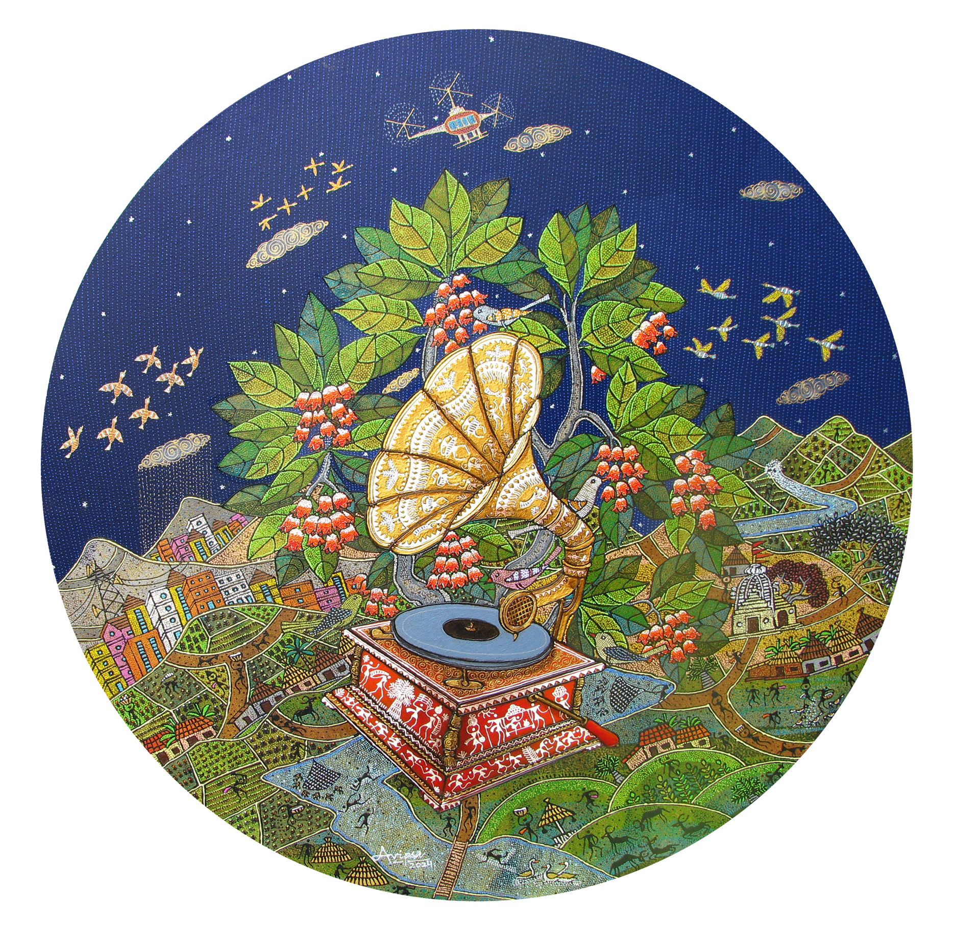 Abhipsa Pradhan (b. 1979) is a National Awardee (Lalit Kala Akademi, 2023) and a multidisciplinary artist working in painting, sculpture, and installations. A BFA and MFA graduate, she has participated in over 50 exhibitions, camps, and workshops. Her work explores indigenous and contemporary themes through the experimental use of materials and techniques. Major recognitions include the Art Society of India Award (2024), AIFACS Award (2022), Prafulla Dahanukar Award (2022), Tribal Award, and the Junior Fellowship from CCRT, Govt. of India. My Work- "Journey" is a layered exploration of time, tradition, and transformation. Blending Idital art with vintage objects, cars, gramophones, mythological figures, rituals, and cityscapes, my work reflects the coexistence of the ancient and the postmodern. It is a personal, physical, mental, and emotional odyssey tracing my path from forestlands to urban life, from indigenous memory to contemporary complexity. Through this fusion, I rediscover my roots while engaging with the evolving realities of India."