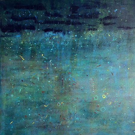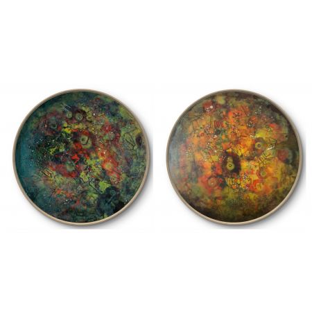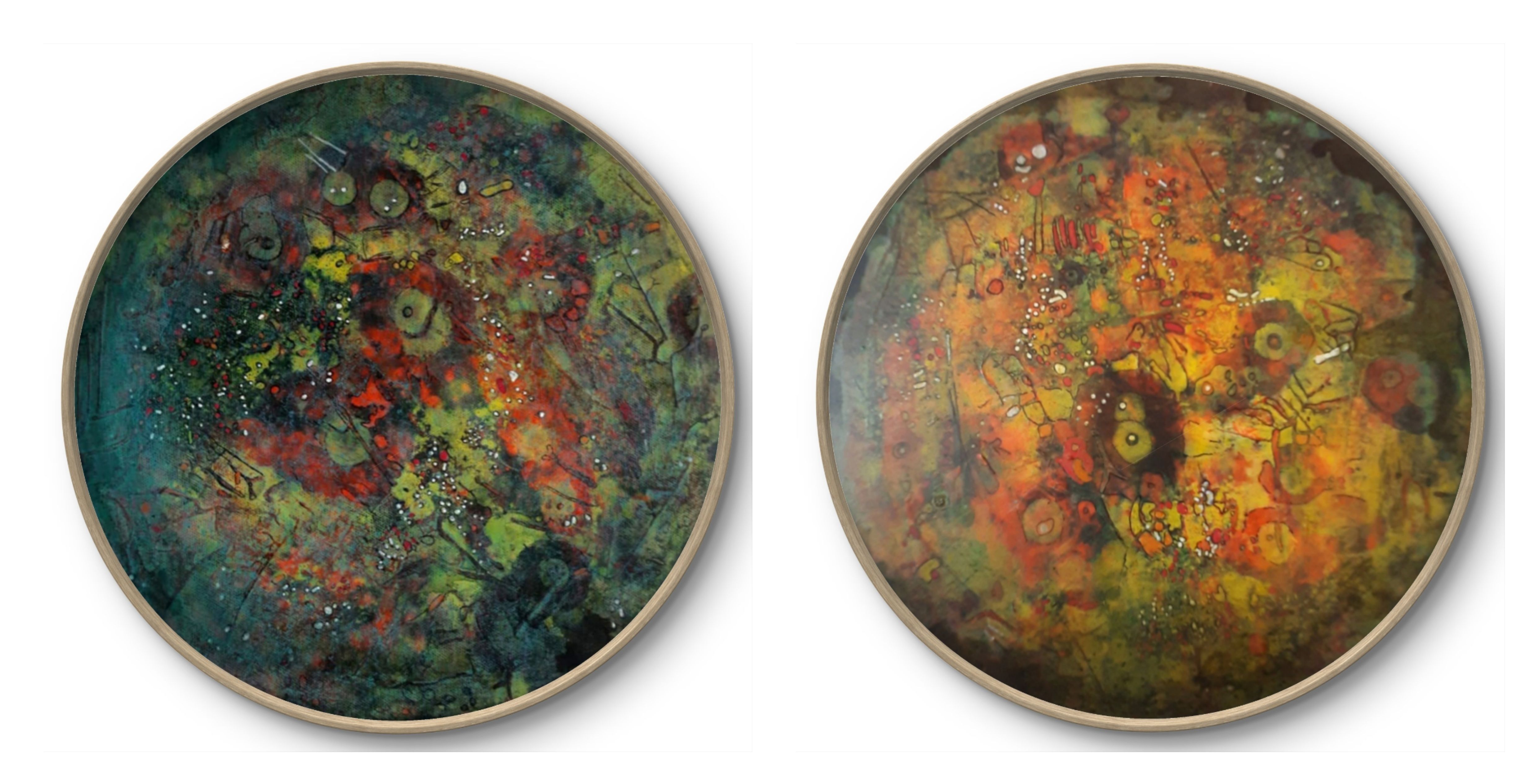 This round painting on canvas reflects my belief that togetherness is about proximity and the quiet, intricate dance of energies that shapes our existence.