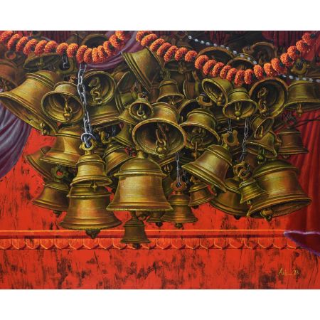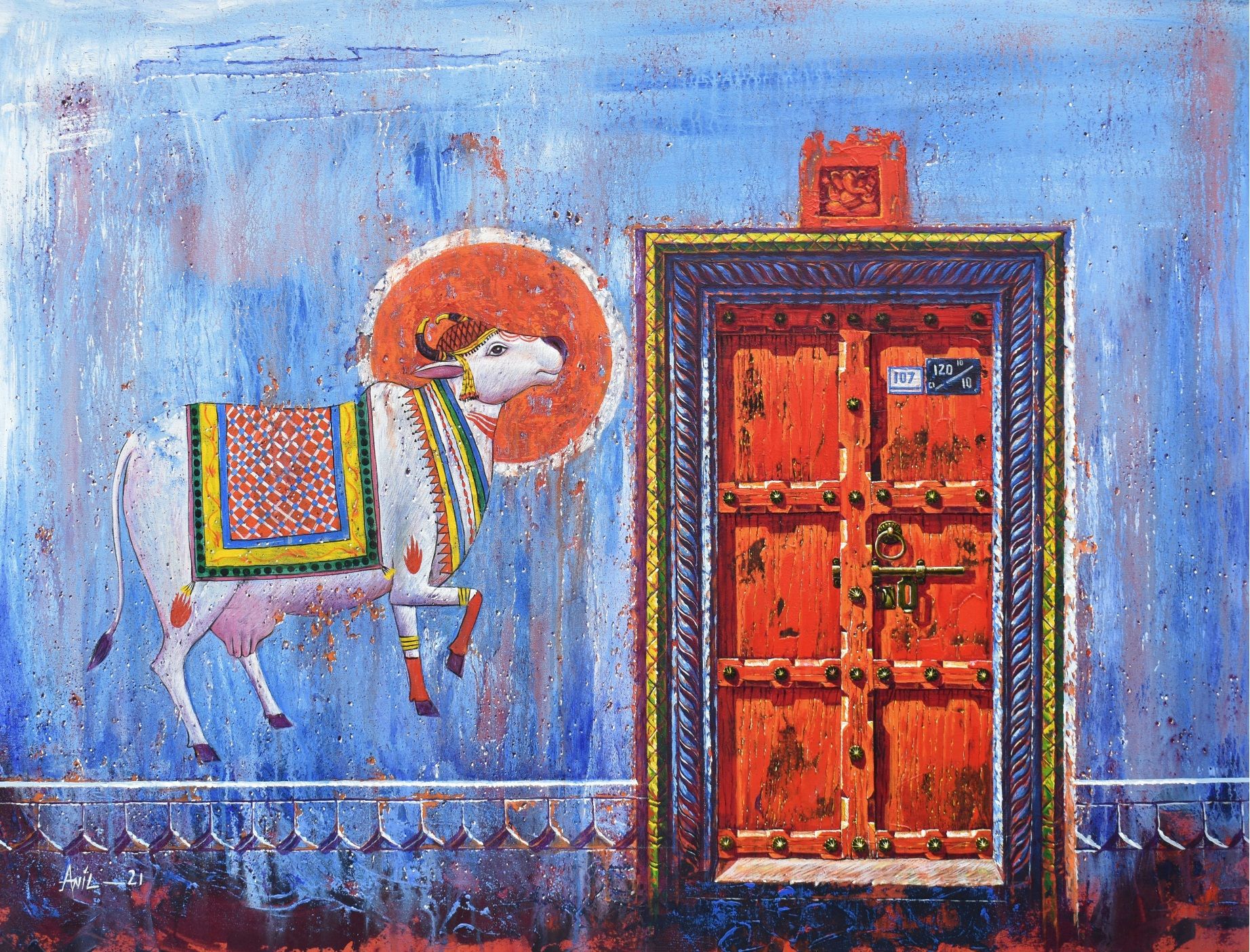 Anil Kumar Yadav, is an artist from Gorakhpur born in 1984, one of the holy cities of India. Anil has walked down the dingy lanes of Varanasi, sat by the ghats, lived and felt the homes there to literally feel the Banaras which is older than history. All those who have visited this divine place have found love and peace. Anil’s visual composition contains huge walls,temples ,bells and decorative doors that depict the unadulterated emotion surging in the landscape, leaving an overwhelmed feeling of finding something precious on the streets of Varanasi, at the doorsteps of its old houses. Anil paintings make you travel time, taking age one its toll, and can make you a shadow of your former self and get the sparkle back in your eyes. Anil’s visual narration presents a pulsating culture, depicting a deep-rooted interest and fascination for the spiritual intricacies of Hinduism. His colours build a sense of community making it welcoming.