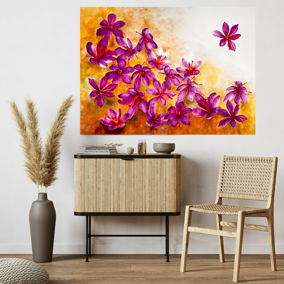 In gardens where the sunlight spills, amidst the whispers of hills, kesar flowers in splendor rise, with the hues that dance beaneath the skies..