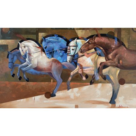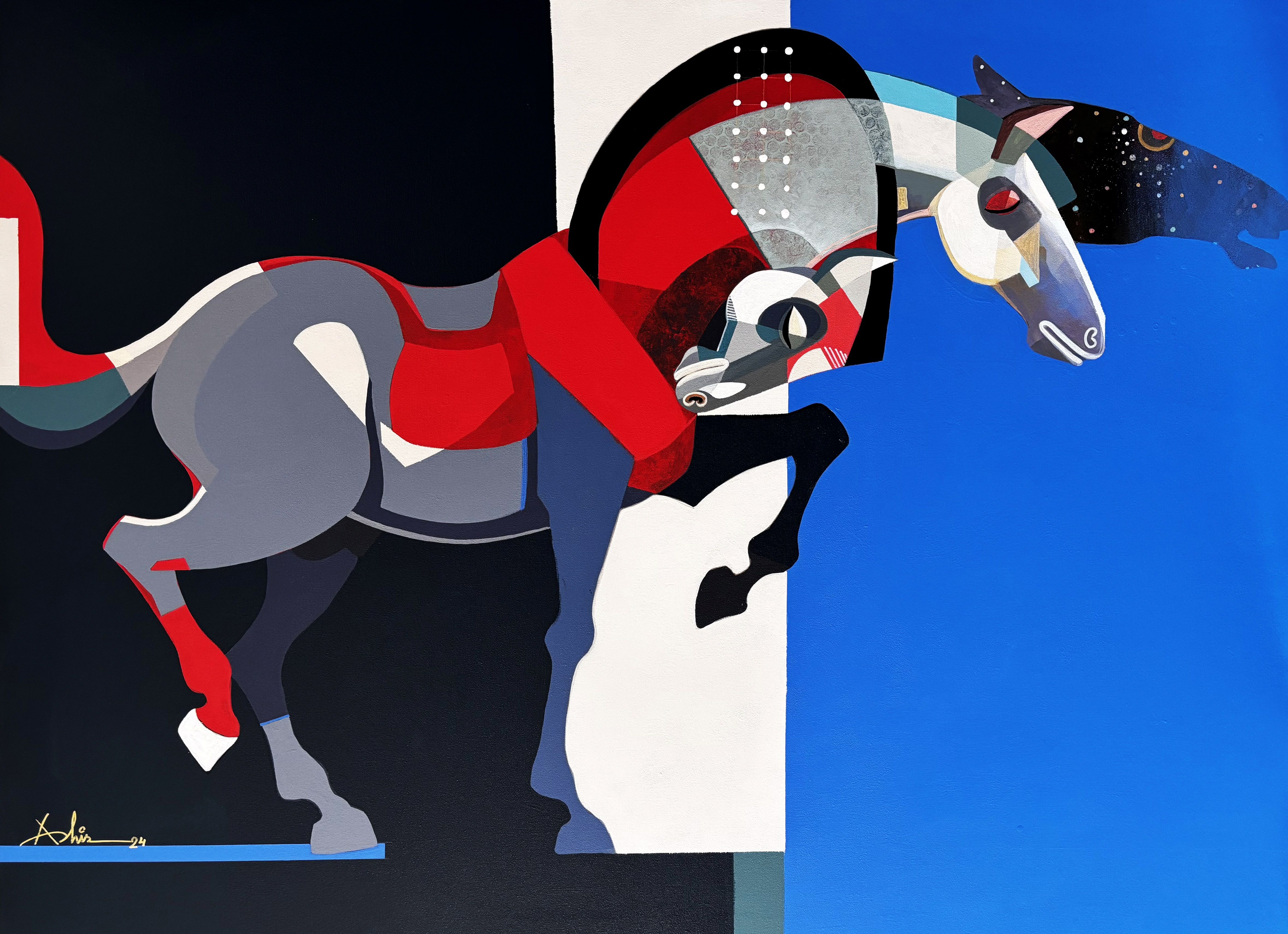 This vibrant acrylic creation springs from a fusion of cubism and figurative expression, designed to capture the dynamic essence of motion and life's exuberant spirit. Through bold geometric planes and exhilarating color contrasts, I've embodied the ceaseless energy that propels us forward, inviting a dance between form and abstraction. This painting is a testament to the pulsating rhythm of existence, a visual symphony poised to invigorate any space with its powerful aesthetic force.