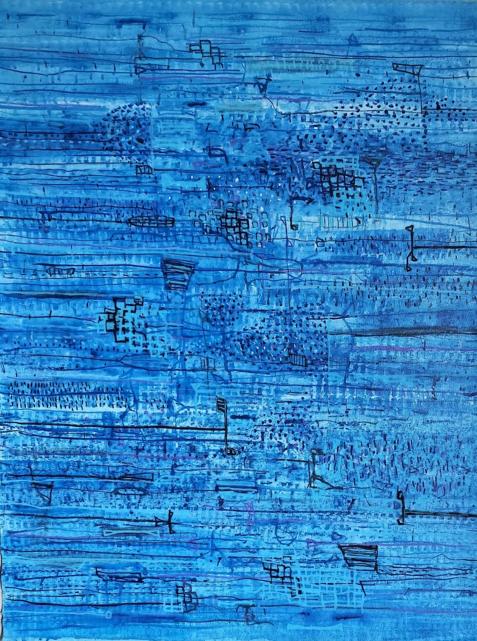 "Most of my paintings are visual compositions—landscape-like forms built through abstraction. They are shaped from my reservoir of memories, formed through numerous journeys and collective remembrances, and woven with lines and colors deeply etched into my consciousness and intuition. Within these works, subtle tonal variations and the gentle flow of lines gradually assert their presence, creating a space that feels both composed and alive. For me, these paintings are as much about solitude as they are about a spiritually intimate experience—personally preserved. They become a direct expression of my inner self, where I touch the canvas not merely with color and form, but with the imprint of my soul—writing it, in a sense. It becomes a movement of dreams and memories that carries me into the depths of abstraction, revealing quiet truths and leading me onward—sometimes toward a forgotten village, sometimes into the heart of a beloved city. In these paintings, color and line are never burdened; they retain a freshness, a radiance that continually enriches their presence—and with each encounter, they reveal new meaning." —Basant Bhargava