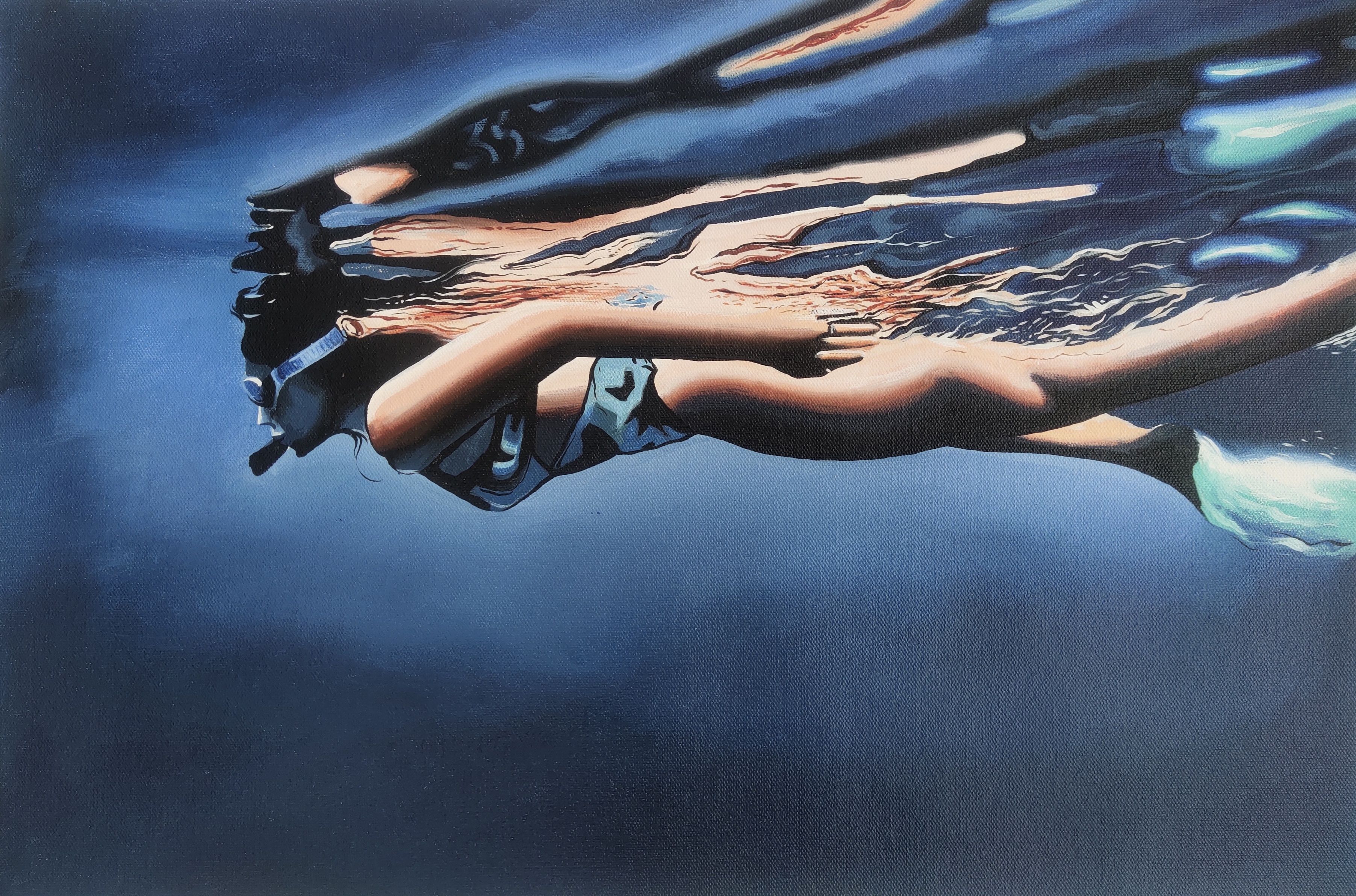 I love to do sports related works in recent times and this underwater pose impressed me a lot to do in art work.