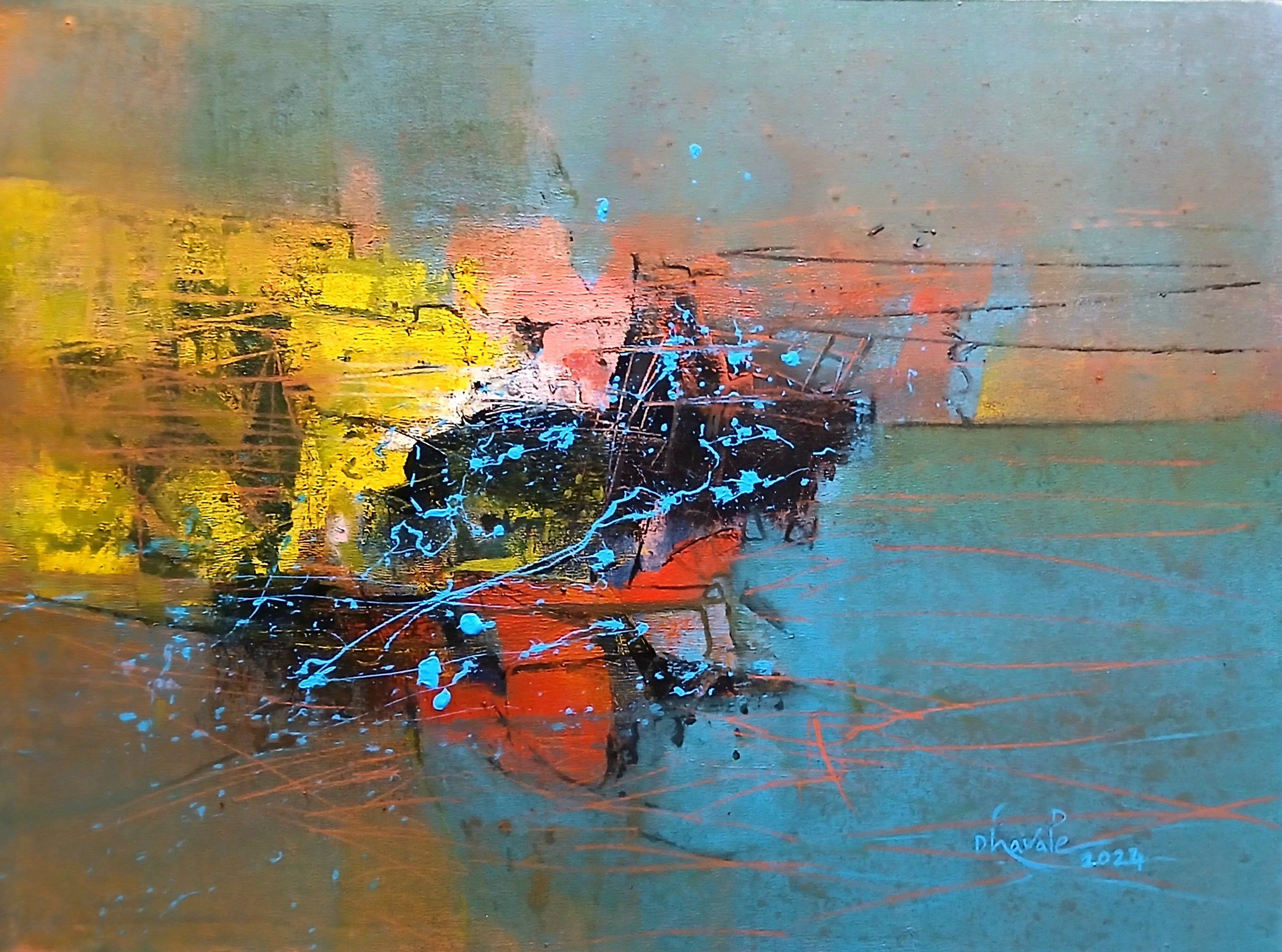A captivating abstract painting depicting nature using acrylic colour on canvas