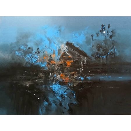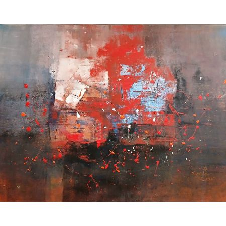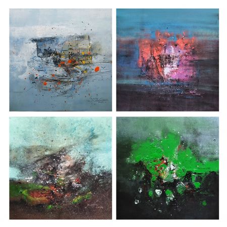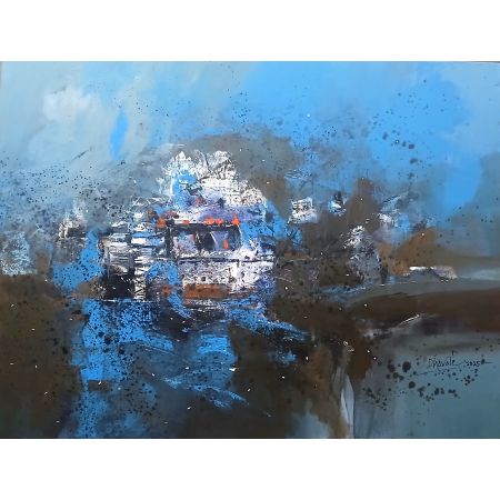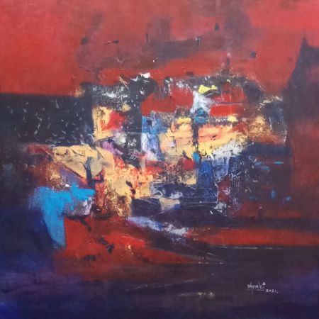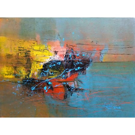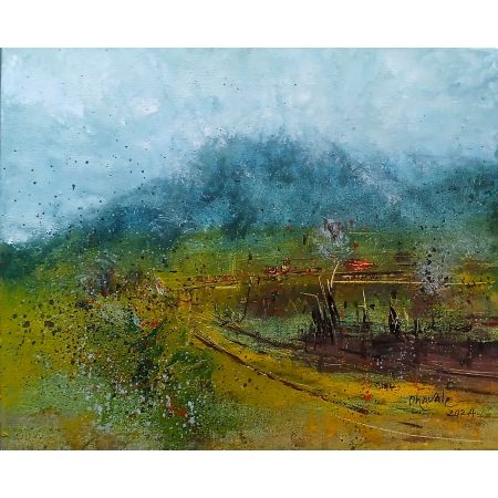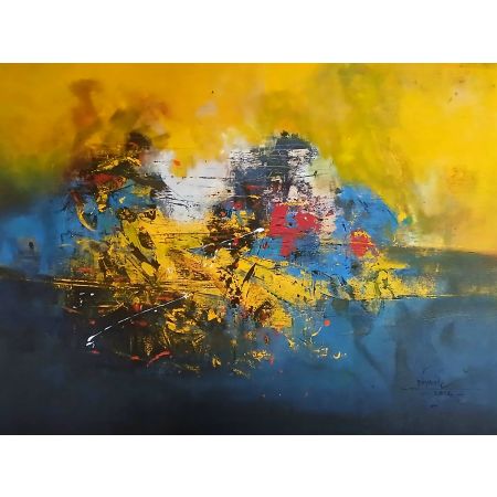 A captivating abstract painting depicting nature using acrylic colour on canvas