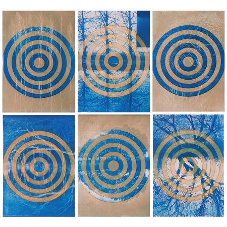 these set of 6 toned cyanotype works 11 x 8.5 inches each.