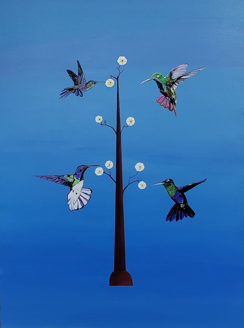 Smallest in size among all the species of birds, Humming birds are an inspiration behind my art work. They can fly forward, backward and even upside down. I seek inspiration from the flexibility which they have. As human, we are blessed with the power to think and process our thought, with many ups and down in life, we should rethink our actions and should be flexible with adopting changes that come as we live.