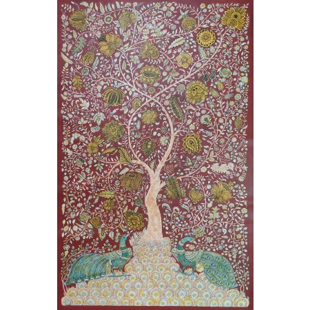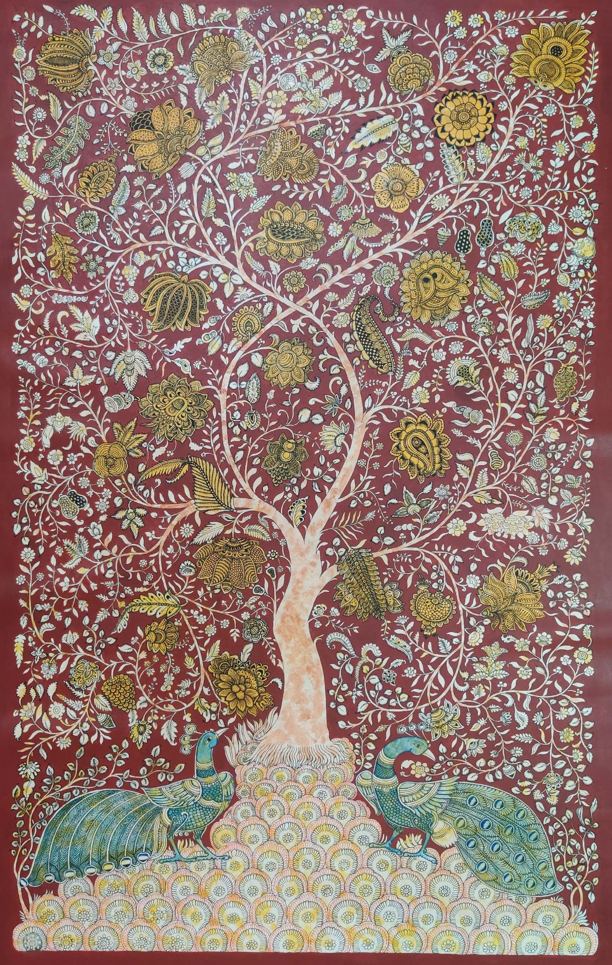 The Tree of Life is one especially popular Kalamkari motif — deeply rooted while growing towards the sky, it connects the heavens, earth and underworld.