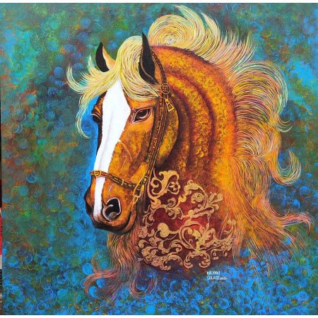 white horse, Chetak—radiant against a textured backdrop, his coat layered in pearly whites and cool shadows. Bold strokes define his flowing mane; his eyes gleam with life. The composition balances realism and emotion, perhaps with a sunset’s warmth or a misty horizon. Named for the legendary steed, your Chetak embodies both personal devotion and timeless grace. The acrylic medium adds vibrancy, capturing his spirit in thick impasto highlights and smooth, blended contours. A masterpiece of loyalty and light.*