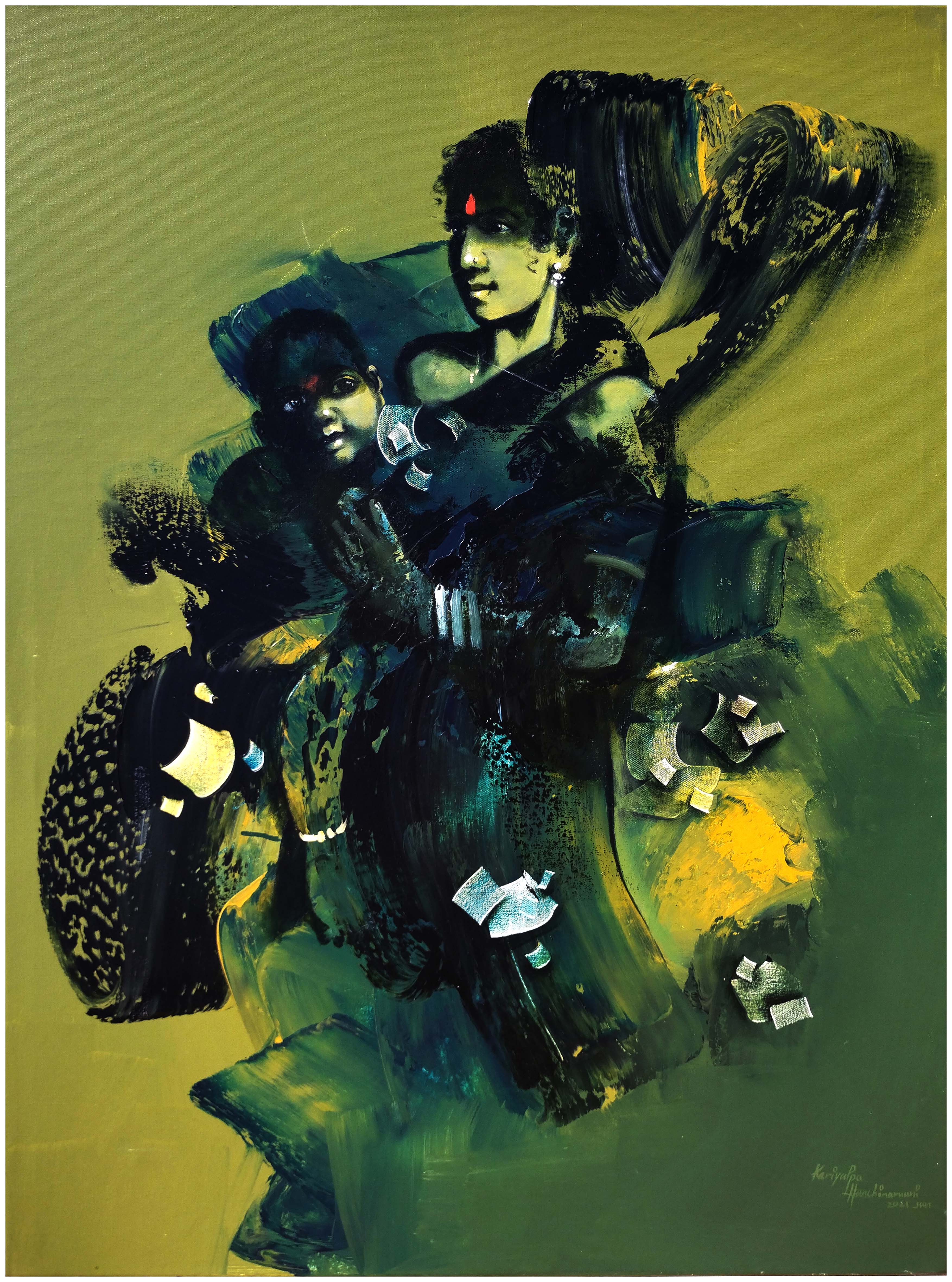 This is a Painting of a mother and child, in which a tribal woman can be seen smiling with her child. I created this artwork in a colorful and abstract style.