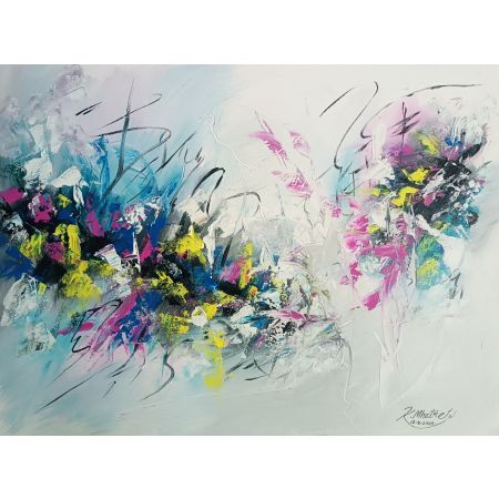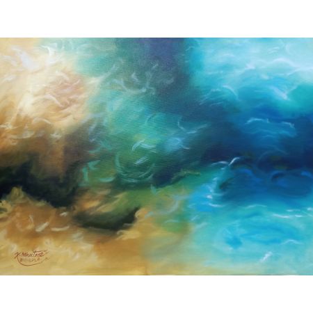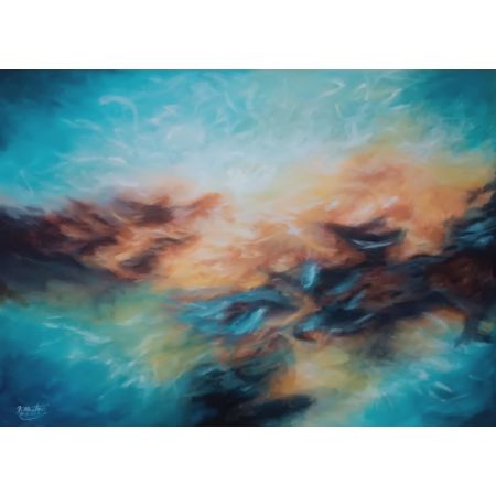 This artwork can be interpreted in many ways—perhaps as a depiction of a stormy sky, a cosmic explosion, or the raw emotion of the artist. Its fluidity and depth make it a captivating piece that draws the viewer into its intricate layers.