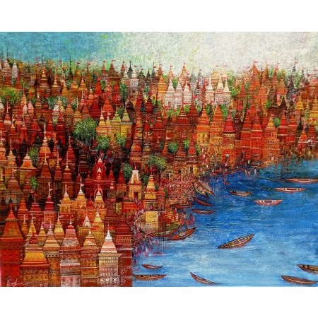 This painting by me depicts "Kashi: The Holy City". Kashi is the ancient name of Varanasi, a city located on the banks of the Ganges River in North India.