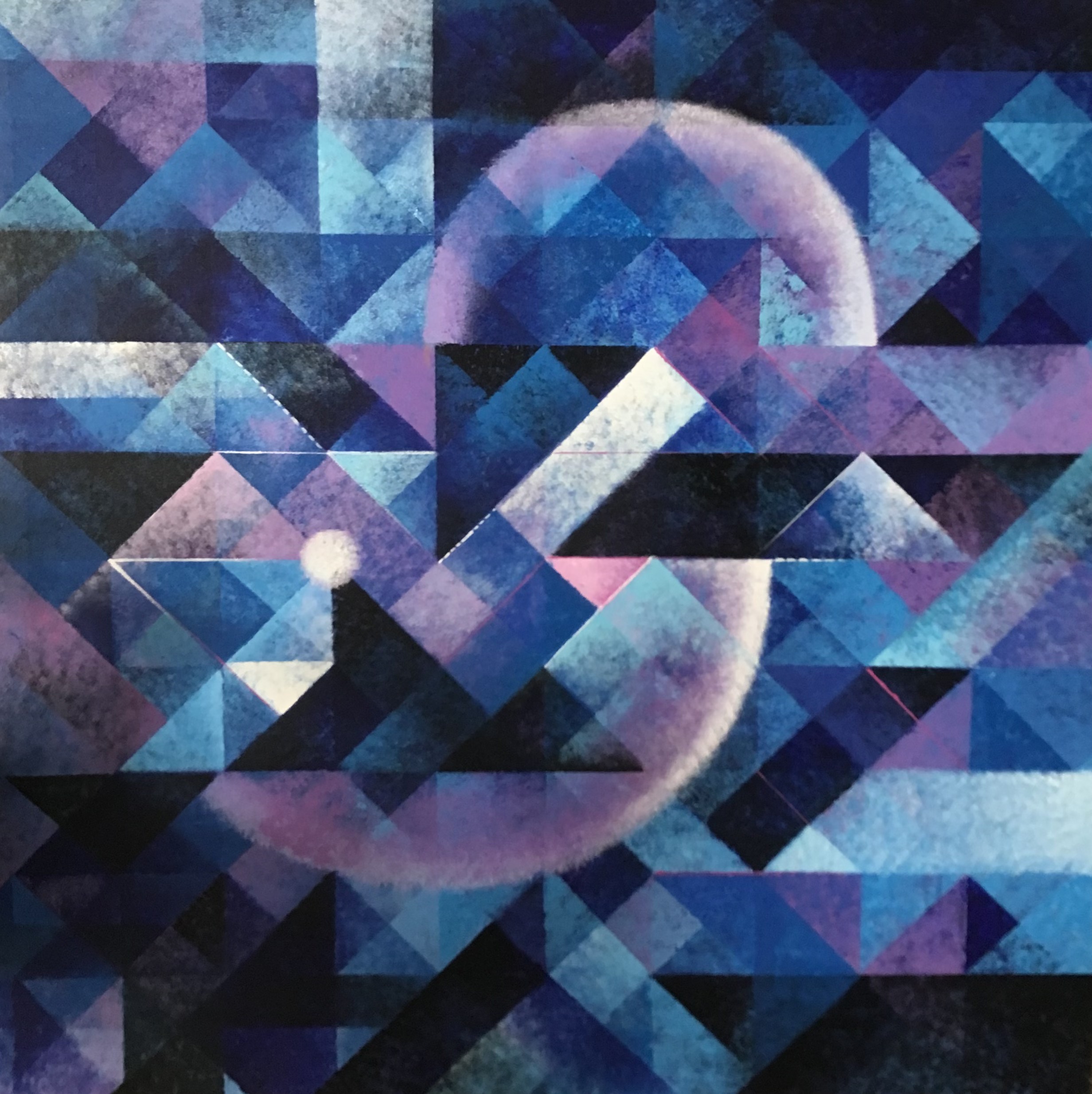 Finding roots of human and nature-inspired by symbols from Indian culture. Triangle and square are main elements in my paintings, like using facing an upward facing triangle for representing male symbol and triangle facing down for female symbols as well as a square derived from combining four triangles is a representation of a wealth of family.
