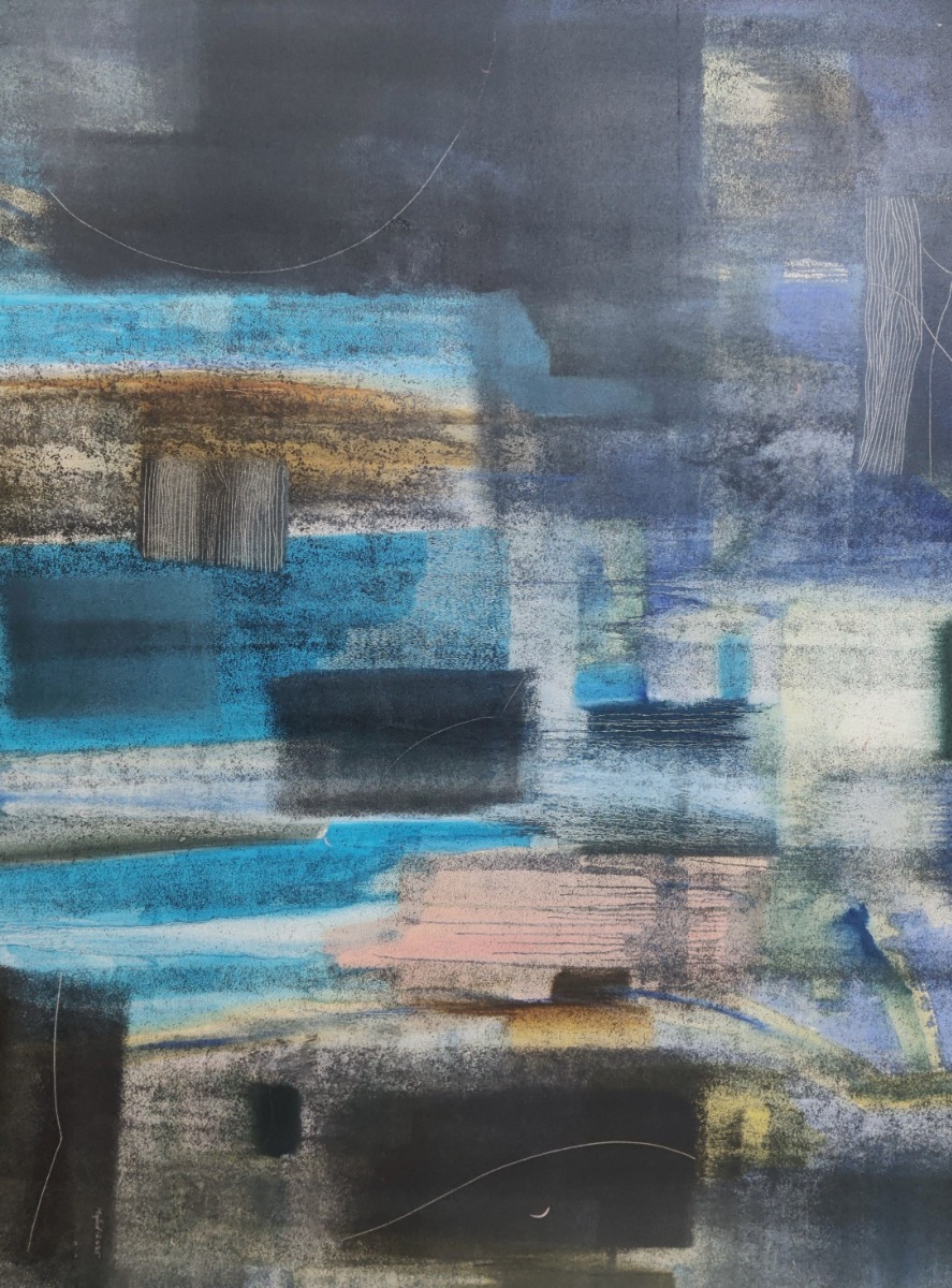 Bold and broad patches of colors, some time flats, some time wavy, some time round and some time of geometrical shape present forms of some known world but in a skeptical way that one may not be sure of it, however his interest of watching it remains intact.