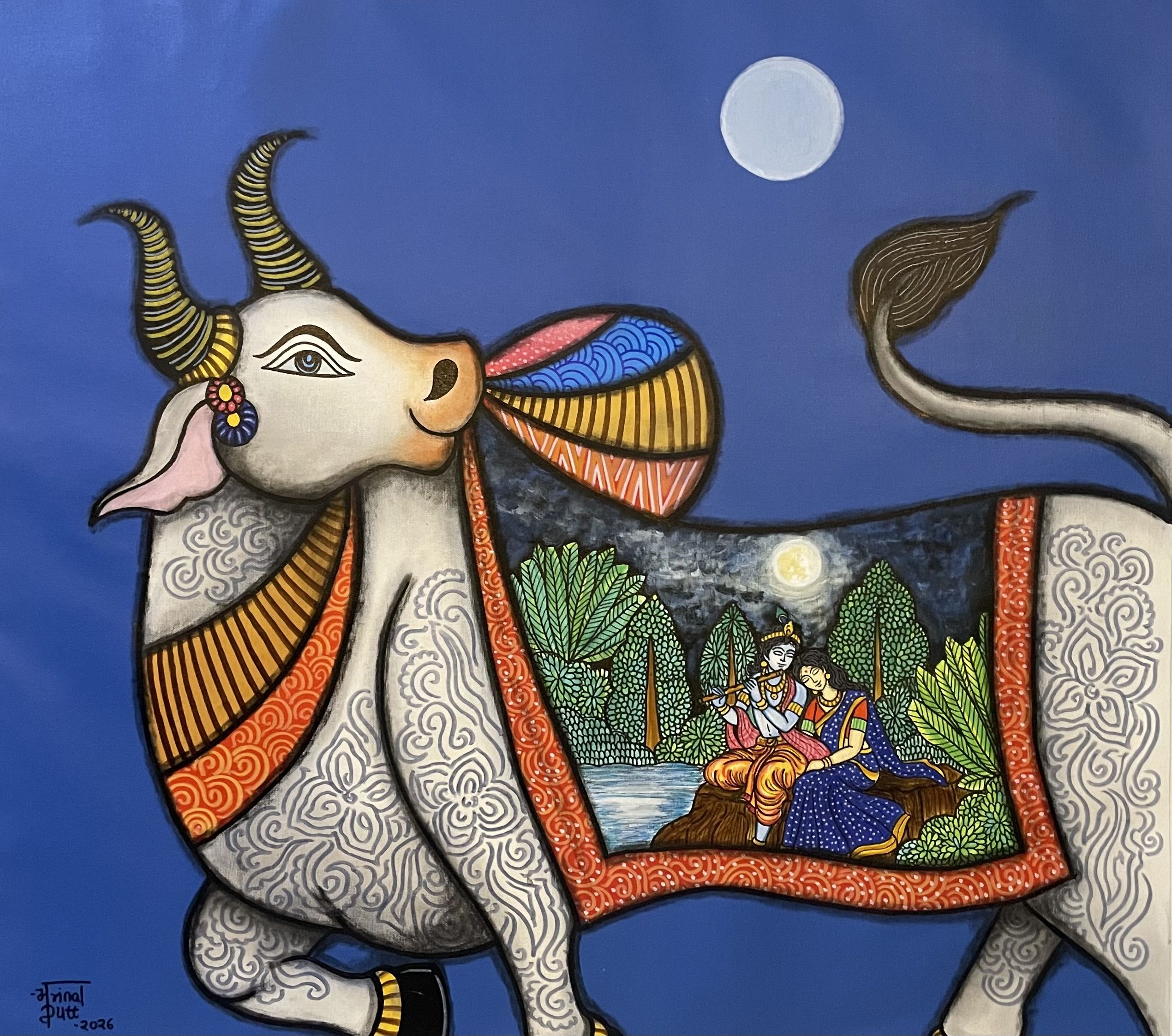 Eternal love of Krishna radha under full moon night