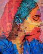 This painting is a celebration of feminine grace, spiritual stillness and cultural heritage. A contemplative women draped in vibrant red and blue exudes grace and inner peace.