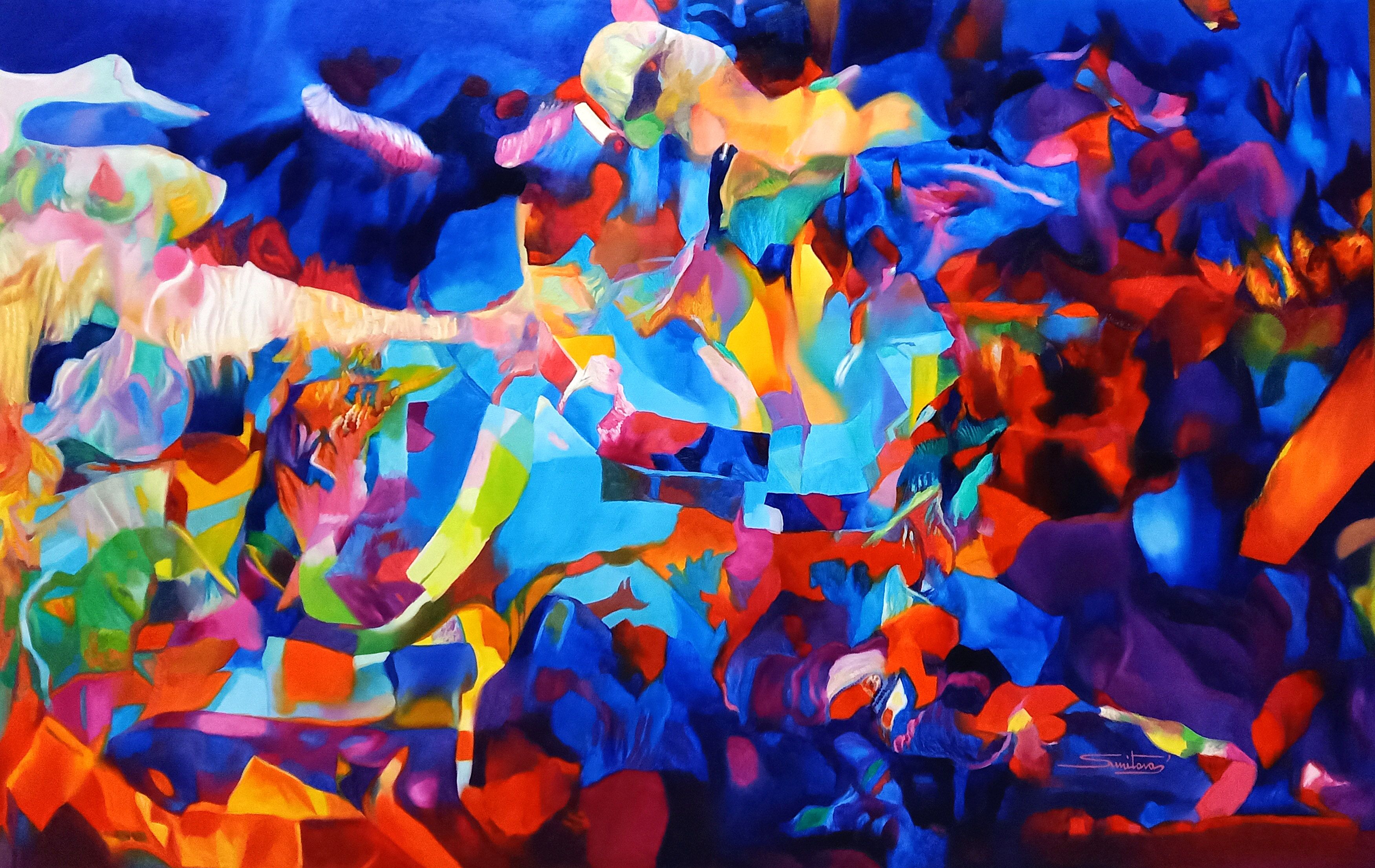 This painting is one of the series of Colour of the Universe, depicting the way I see the Universe and it's creation. These colours are sourse of inside of my mind and the way I communicate with nature, the vibrant colour are the impression of positive, strength and power where as soft colour are significance of love, affection, emotion, creativity, care, and faith. These colours are symbolize with every aspect of nature movement that pass through my life. I feel the universe of inside of my mind which is connected with this outer Universe in every way and gives us the deep knowledge of existence.