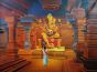 Admire the beauty of this exquisite Ganesha artwork, set in an ancient temple and revered by the pujaris, featuring a stunning antique finish.